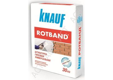 «Кнауф-Ротбанд» — универсальная сухая штукатурная смесь на основе гипсового вяжущего с добавками, обеспечивающими повышенную адгезию. Штукатурка Ротбанд белая, 30 кг (40меш./под..)