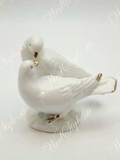 Свадебная фигурка "Влюбленные голуби" ST1148 Фигурка для украшения свадебного торта из белого фарфора. Выполнена в форме двух влюбленных голубей, которые тянутся друг к другу клювиками. Один из голубей заботливо склонился над другим. На лапки, клювы, кончики крыльев и хвостов голубей нанесено золотое покрытие. Фигурка символизирует нежность и искреннюю любовь. Материал: фарфор. Мин. заказ 500 руб.