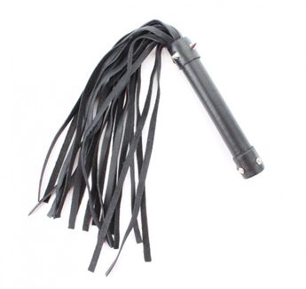 Плеть выполнена из натуральной кожи черного цвета. Ручка обтянута гладкой кожей и декорирована шипами. Количество хвостов - 20 штук. Стильный аксессуар поможет воплотить эротические фантазии в реальность. Длина хвостов - 40 см.<br> Длина рукояти - 16 см. None