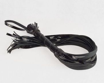 Гладкая лаковая плеть (флогер) изготовлена из искусственной кожи, цвет - черный. Состоит из жёсткой рукояти и ударной части из 24 хвостов. Используется в основном для разогрева (начало флогеляции), Идеально подходит для использования, как мужчиной, так и женщиной. None