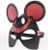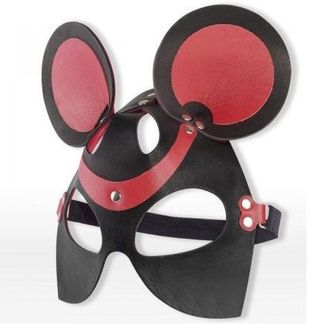 Маска мышки из красной и черной натуральной ременной кожи с миндалевидными прорезями для глаз, украшенная металлическими заклёпками серебристого цвета. Для максимального комфорта маска имеет бархатистую велюровую подкладку, обеспечивающую приятные тактильные ощущения при соприкосновении с кожей лица. Фиксирующая резинка с пряжкой позволяет легко регулировать размер изделия. None