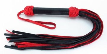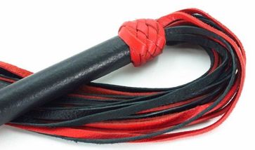 Плеть выполнена из натуральной кожи черного и красного цветов. Гладкая ручка декорирована по краям кожаным плетением. Мягкие хвосты плети доставят незабываемое впечатление. Количество хвостов - 20 штук. Для удобства на рукоятке имеется петелька . Аксессуар позволяет в полной мере насладиться сексом в стиле БДСМ. Длина рукояти - 17 см. None