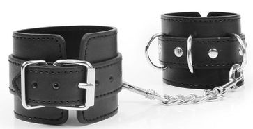 Великолепные наручники под кожу для любителей БДСМ-игр! В комплект входит прочная металлическая цепочка, которой при необходимости можно соединить изделия. Размер наручников регулируется с помощью ремней. Изделия просты в использовании, не требуют специального ухода. None