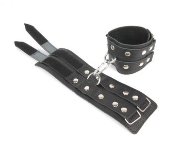 - Черные широкие кожаные наручники с заклепками на карабине (140431) по выгодной цене 1 878 р. руб.;