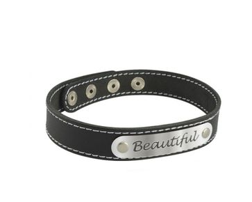 Чокер изготовлен из натуральной кожи и дополнен вставкой под металл с надписью Beautiful. Регулируется при помощи кнопок. None