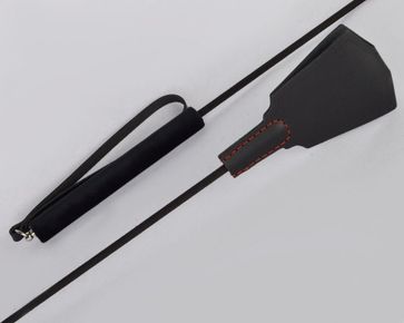 Стек состоит из жесткой рукояти, гибкого полимерного хлыста и расширяющейся хлопушки из натуральной кожи. Декорирован контрастной строчкой. None