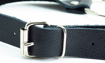 Кляп выполнен из натуральной кожи высокого качества черного цвета. Кольцо из прочного метала закреплено ремнями. Размер регулируется пряжкой сзади, подойдет на обхват от 33 до 50 см. Надежный кляп для БДСМ игры. Диаметр кольца - 4,5 см.<br> Ширина ремней - 2 см. None