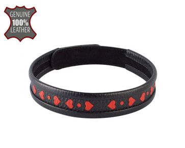 Изысканный ошейник привнесёт в ролевые игры нотку романтизма и обязательно привлечёт внимание к Вашей шее. Черный ошейник из натуральной кожи, с красными вставками в виде сердечек. На ошейнике имеется несколько кнопок, которые позволяют подогнать его под необходимый размер. None