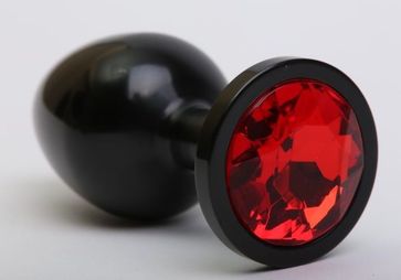 Чёрная анальная пробка с красным стразом - 8,2 см. (81007)