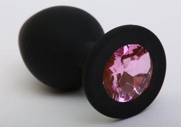 Чёрная силиконовая пробка с розовым стразом - 9,5 см. (80779)