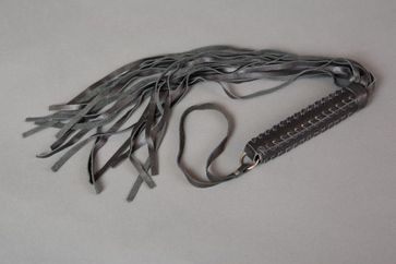 Чёрный кожаный флоггер с плетёной ручкой (42295)