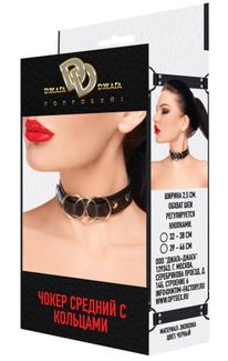 Длинный черный чокер с 3 кольцами (232177)