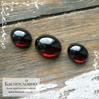 - Гарнитур три тёмно-красных граната (альмандин) из Танзании огранка Баснословно овал кабошон пара 13×10 и 15,5×12мм 30,98 карат по выгодной цене 51 120 р. руб.;