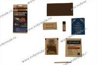 Набор "Ремонт нитей обогрева заднего стекла". Позволяет с помощью недорогого ремонта восстановить эффективную работу обогревателя заднего стекла. Набор содержит: 1.салфетка для обезжиривания 2. наждачная бумага 3. клей-компаунд для ремонта нитей 4. активатор 5. токопроводящий клей для контактов 6. шаблон (самоклеющийся). 7. кисточка Содержимое набора является продуктом совместной разработки с исследовательским центром General Motors. Применение: Не требует специальных навыков. Определите поврежденные места сетки обогревателя, затем отключите обогрев. Удалите защитный слой с шаблона и наложите его на ремонтируемый участок. Встряхните флакон с компаундом и нанесите его кисточкой. После подсыхания повторите процедуру до трёх раз. Через 20 минут осторожно отделите шаблон от стекла. Эксплуатировать через сутки. None