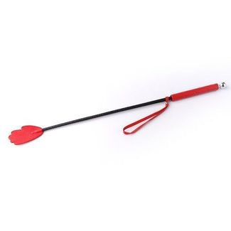 Стек красного цвета состоит из деревянной рукояти и хлыста из гибкой полимерной основы, оплетённых натуральной кожей. На кончике хлыста имеется окончание в форме ладони. None