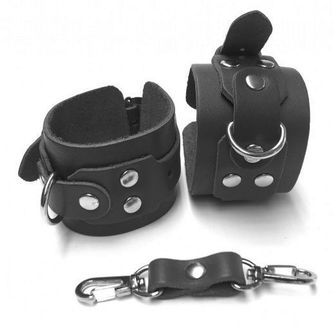Наручники из натуральной кожи чёрного цвета. Наручники выполнены из толстой итальянской кожи, сохраняют форму и уверенно удержат вашего партнера в оковах страсти во время игры.<br><br> Особенности изделия:<br> - Классический дизайн<br> - Для ценителей и новичков БДСМ игр<br> - Литая полноценная фурнитура<br> - Регулируемый размер<br> - Изящный кожаный ремешок для соединения наручников в комплекте. Ширина - 5 см. None