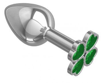 Серебристая анальная втулка с клевером из зеленых кристаллов - 7 см. (119413)
