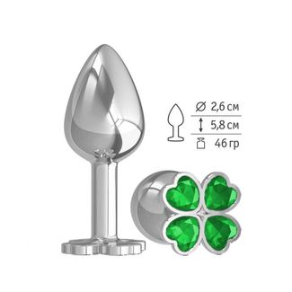- Серебристая анальная втулка с клевером из зеленых кристаллов - 7 см. (119413) по выгодной цене 1 194 р. руб.;