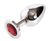 Серебряная металлическая анальная пробка среднего размера с красным стразиком - 8,2 см. (68092)