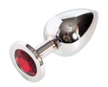 - Серебряная металлическая анальная пробка среднего размера с красным стразиком - 8,2 см. (68092) в каталоге Товары для дома из пластика в Москве;