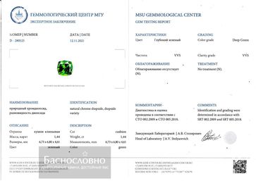 - Сертифицированный насыщенно-зелёный хромдиопсид из России (Якутия) огранка квадрат октагон 6,80x6,73мм 1,44 карат по выгодной цене 8 040 р. руб.;