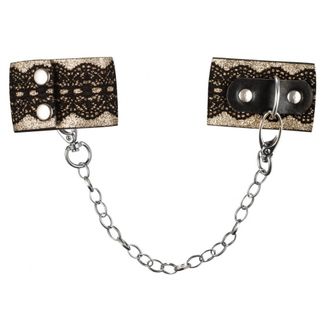 Стильные наручники переливающегося цвета с кружевом. Имеют съемную цепочку на карабинах. Застегиваются на две металлические кнопки. None