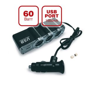 Длина: 1м; Сеть: 12/24 В; 3 вых+USB; Iвых.=1000 mA; Защита от короткого замыкания; индикация сети None