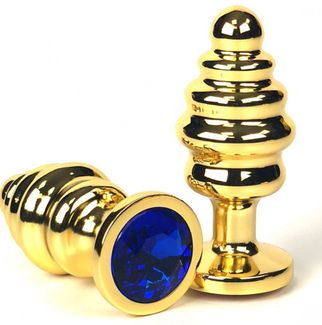 - Золотистая ребристая анальная пробка с синим кристаллом - 6 см. (166596) по выгодной цене 873 р. руб.;