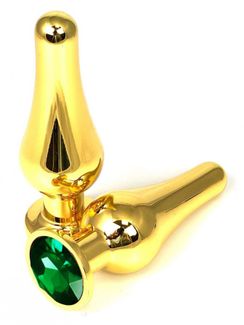 - Золотистая удлиненная анальная пробка с зеленым кристаллом - 9 см. (166978) по выгодной цене 788 р. руб.;