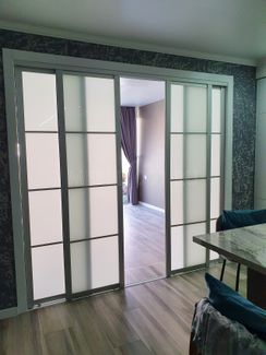 Закажите Зонирование жилых помещений. Раздвижная перегородка, стекло матовое у компании Кухни. Чайные группы. Гостиные. Спальни. Прихожие. Мебель для детской комнаты в Москве на портале Alloy: