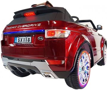 Детский электромобиль Range Rover Luxury Red 12V 2.4G - SX118-S - это красивый детский джип для современных детей. Это не просто еще одна игрушка, это настоящий детский транспорт, который требует внимание ребенка, как автомобиль требует внимание водителя. При обучении вождению на детском транспорте тоже будут возникать аварийные или внештатные ситуации, которых не избежать даже малышам. Ведь каждый ребенок хочет кататься на максимальной скорости и преодолеть все мыслимые и не мыслимые препятствия. Детский электромобиль Range Rover Luxury Red 12V 2.4G - SX118-S выполнен из ударопрочных и надежных материалов, а также оснащен всем самым необходимым для безопасности ребенка во время катания. Именно поэтому, данная модель отлично подойдет для гиперактивных и озорных детей. Дополнительный функционал:Цвет: красный лак ( вишневый глянцевый )Цифровая мультимедиа с сенсорным дисплеем, оснащённая разъёмами USB/SD/Aux. Возможность воспроизведения файлов в формате MP4.Стильный электромобиль с дизайном основанном на дизайне автомобиля Land Rover.Отлично подходит как для города, так и для загородных дорог.Резиновые колеса обеспечивают высокую проходимость.Очень красивая система подсветки колес, которая выключается с помощью рычага.Пружинные амортизаторы сделают катание по неровной дорожной поверхности более комфортным.Электромобиль изготовлен на металлическом каркасе и оснащен ударопрочным корпусом из пластика.Покрытие корпуса не выгорает на солнце и устойчиво к образованию царапин.Снизу выдвигается ручка и колесики, что позволяет передвигать машинку по типу "чемодана".Свет фар дает возможность кататься в темное время суток.При катании обязательно используйте боковые зеркала, которые помогают при катании среди препятствий и потока людей.Открывающиеся двери позволяют с комфортом совершать посадку в салон.Каждая дверь оснащена замком-фиксатором.<