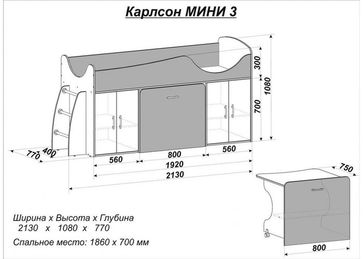 - Кровать-чердак Карлсон МИНИ-3 (Размер кровати: 70Х186) по выгодной цене 11 990 р. руб.;