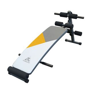 Скамья для пресса DFC. Тренажер предназначен для домашнего использования. Изогнутая поверхность. Удобные валики. Регулируемый угол наклона скамьи. В комплекте две ручки по к None