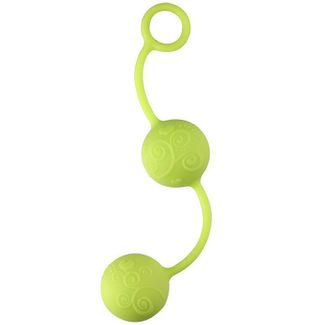 Зелёные вагинальные шарики с завитушками на поверхности. Приятные на ощупь, из силикона. None