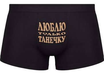 - Мужские трусы с прикольной надписью "Люблю только Танечку" по выгодной цене 980 р. руб.;