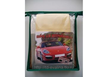 В комплект входит:Салфетка для стекол и зеркал,автополотенце,замшевая,губка из микроволокна.Салфетка махрокая"автополотенце"для ухода за салоном и кузовом автомобиля.Внутри салона в сухом виде хорошо собирает пыль с панели и обладает антистатическим эффектом.Во влажном виде убирает разные пятна даже с сидений.Вторая-тонкая.гладкая салфетка предназначена для полировки стекол,зеркал,фар не оставляя разводов и ворсинок. Справляется со стойкими загрязнениями(битумные пятна,тополиные почки,следы насекомых).Третья-из натуральной замши.Специальная обработка обиспечивает 100%абсорбирующую способность.Отлично впитывает влагу, не оставляя подтёков,полос и пятен.Возможно использовать для нанесения полироли и защитных составов.Четвертая-губка из искусственной замши для мытья автомобиля.Нежно и бережно очищает автомобиль как внутры так и снаружи не царапая поверхность.Все салфетки после использования стираются обычным мылом.