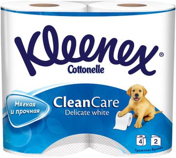 - Kleenex Clean Care Delicate White 4 рулона в упаковке 2 слоя в каталоге Туалетная бумага в Москве;
