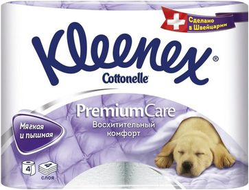 - Kleenex Premium Care Восхитительный Комфорт 4 рулона в упаковке 4 слоя в каталоге Туалетная бумага в Москве;