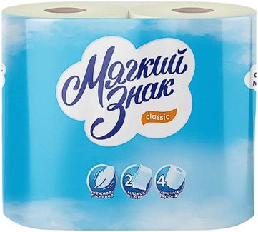 - Мягкий Знак Classic 4 рулона в упаковке 2 слоя в каталоге Туалетная бумага в Москве;