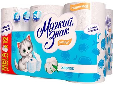 - Мягкий Знак Comfort Хлопок 12 рулонов в упаковке 2 слоя в каталоге Туалетная бумага в Москве;