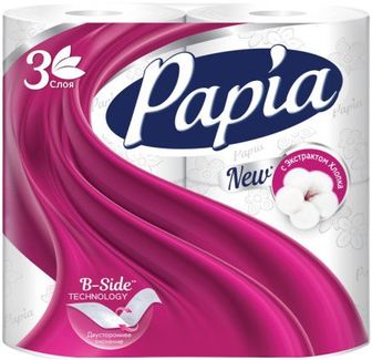 - Papia 4 рулона в упаковке 3 слоя по выгодной цене 235 р. руб.;