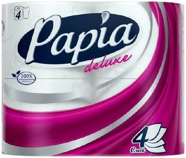 - Papia Deluxe 4 рулона в упаковке 4 слоя по выгодной цене 152 р. руб.;