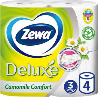 - Zewa Deluxe Camomile Comfort 4 рулона в упаковке 3 слоя по выгодной цене 125 р. руб.;