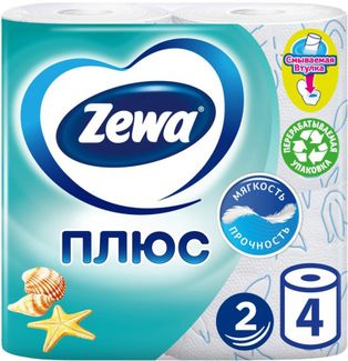 - Zewa Плюс Океан 4 рулона в упаковке 2 слоя по выгодной цене 139 р. руб.;