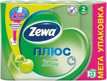 - Zewa Плюс Яблоко 12 рулонов в упаковке 2 слоя по выгодной цене 415 р. руб.;