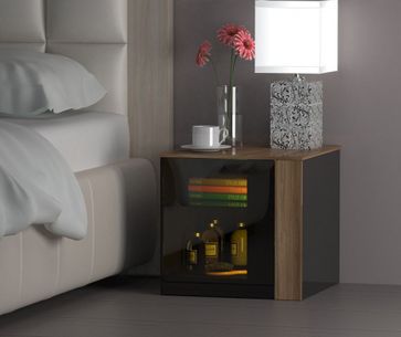 Тумба с дверью. Открывание нажатием. Материалы: ЛДСП, стекло.