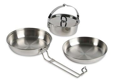 <h2>Компактный набор походной посуды: кастрюля, сковородка и миска складываются друг в друга как матрешки.</h2> <h3>Особенности:</h3><ul> <li>В наборе: кастрюля: 13,5x7,0 см / 240 г / 0,8 л, сковорода: 16,5x3 см / 100 г, миска: 17,3x6 см / 210 г. </li> <li>Материал: нержавеющая сталь.</li> <li>Набор посуды: 3 предмета</li> <li>Размер: 17,3x8 см</li></ul><br> <p>Вес: 550 г</p> None Можно купить без предварительного заказа. Возможен самовывоз. Есть доставка.