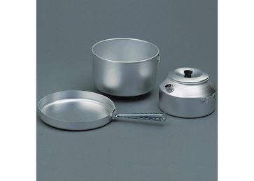 <h2>Легкий набор алюминиевой посуды</h2> <p><ul> <li>Алюминий - это прочный и легкий материал, он проводит тепло равномерно и быстро, поэтому еда не подгорает в центре кастрюли. Жесткая поверхность не царапается в процессе эксплуатации.</li> <li>Вся посуда сделана из сверхлегкого сплава алюминия, он на 50% прочнее и несколько легче обычного алюминия.</li> <li>В набор входят котелок 2 л, сковорода 18 см и чайник 0.9 л.</li> <li>Сковорода может использоваться в качестве крышки.</li> <li>Съемная ручка подходит для сковороды, кастрюли и чайника.</li> <br> <li>Материал: алюминий</li> <li>Вес: 535 г</li> </ul></p> None Можно купить без предварительного заказа. Возможен самовывоз. Есть доставка.