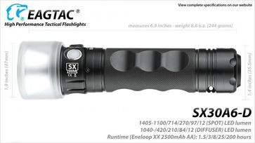 Знакомьтесь: Поисковый фонарь EagTac SX30A6D,с функцией кемпингового освещения, весом 244 гра