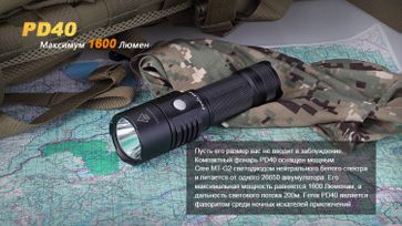 Для работы фонарю Fenix PD40 потребуется лишь 1 Li-ion аккумулятор 26650, и зарядное устройство (не входят в комплект фонаря).